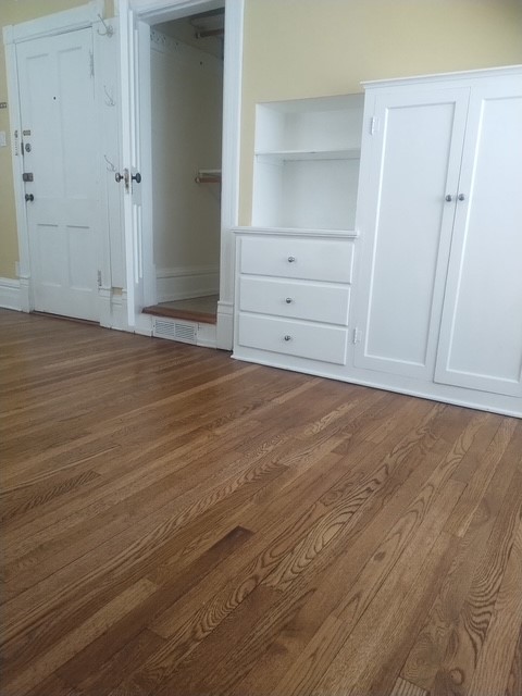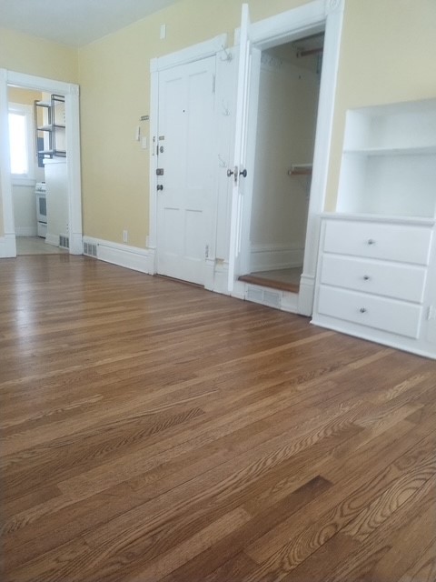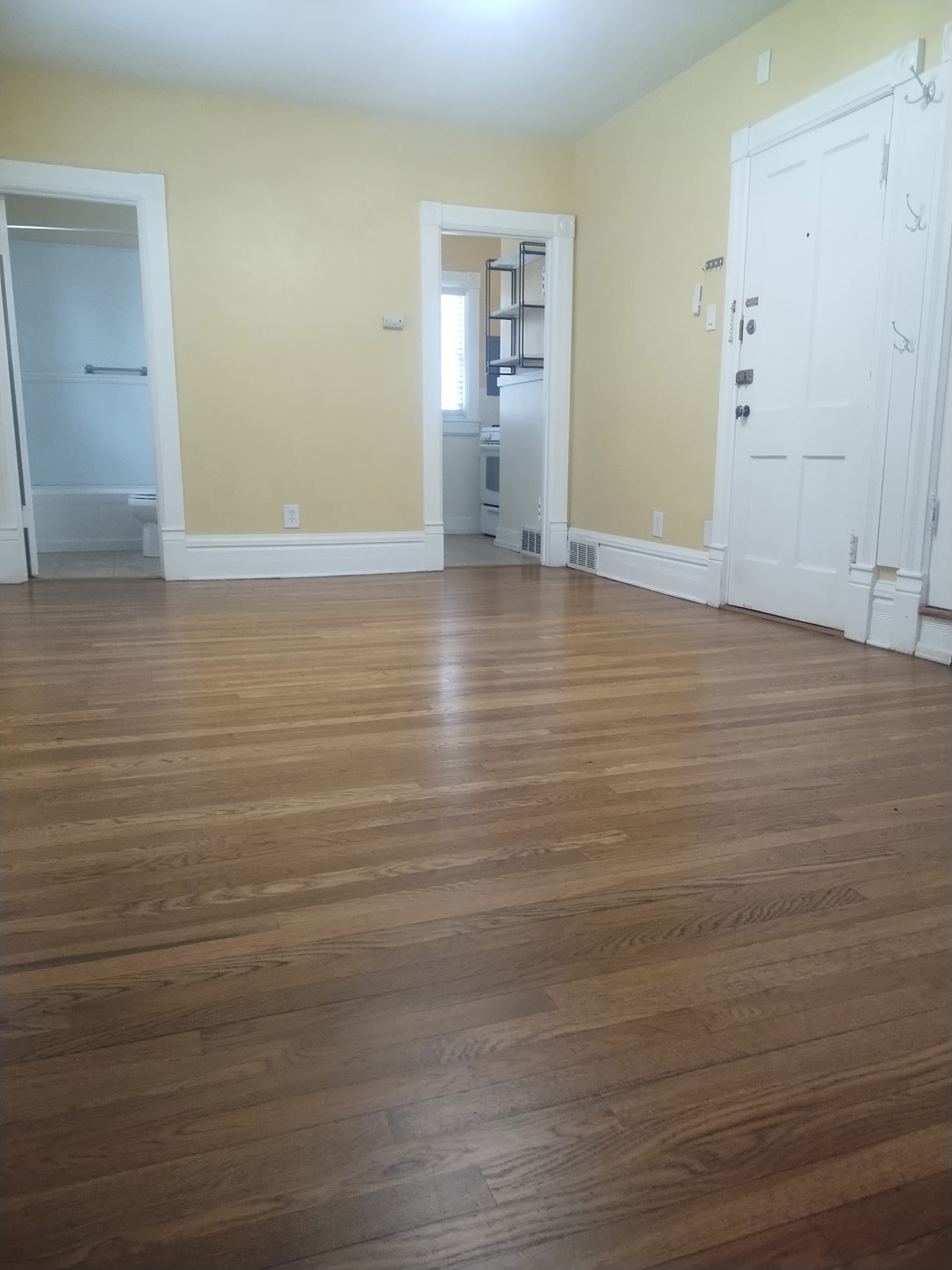 Tenant pays for electric, gas used for cooking, internet and cable services. Common utilities for heat, water, sewer and trash are included in the monthly rent and paid by owner. One year minimum lease term. Apartment is an efficiency/studio that offers a compact highly usable living area. No pets and no smoking on the property. First months rent and security deposit payable at lease signing.